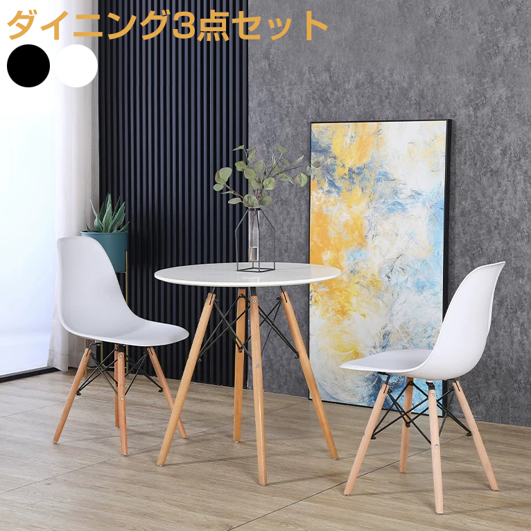 ダイニングテーブルセット 2人 2人用 北欧 イームズテーブル 丸テーブル ラウンドテーブル 70cm ダイニングチェア イームズチェア 木脚 ホワイト 白 黒 おしゃれ