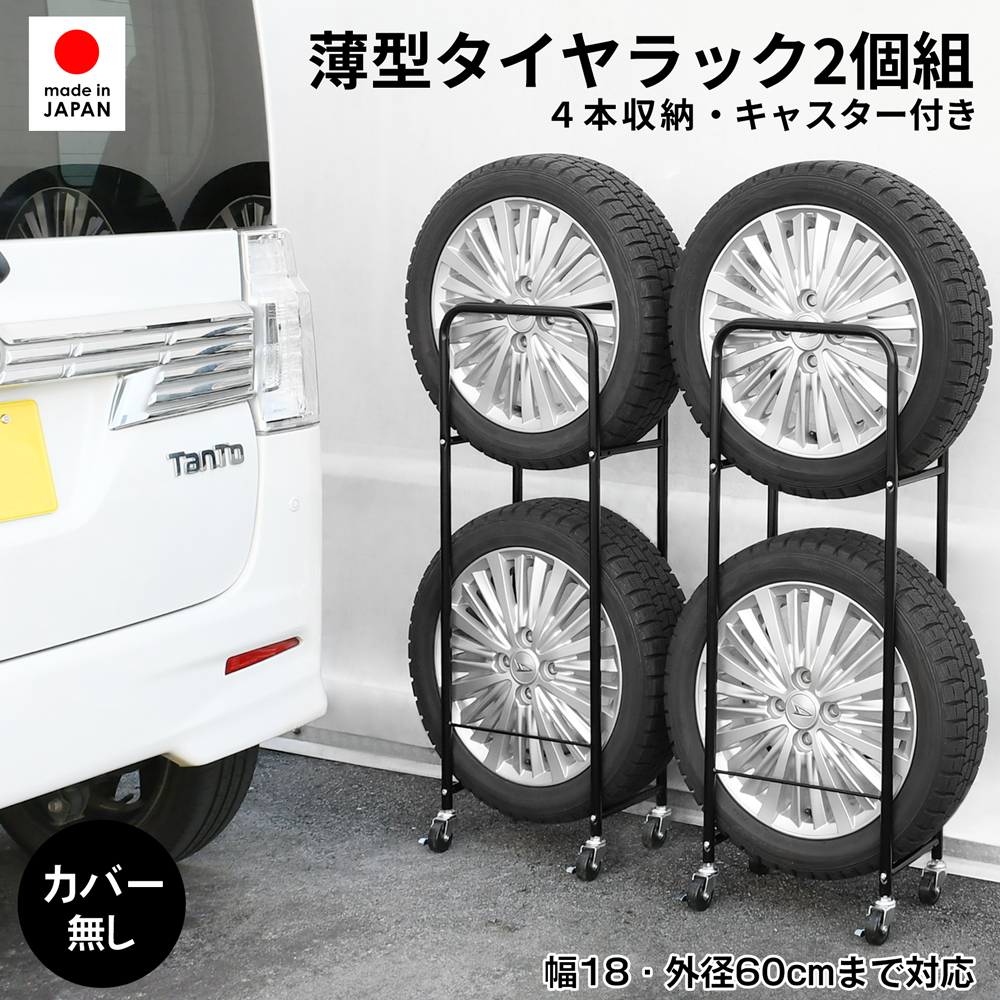 軽自動車用 薄型タイヤラック2個組 タイヤ幅18cm用 日本製 | タイヤ収納 縦置き 外径60cmまで対応 冬タイヤ すき間 0675 爆買