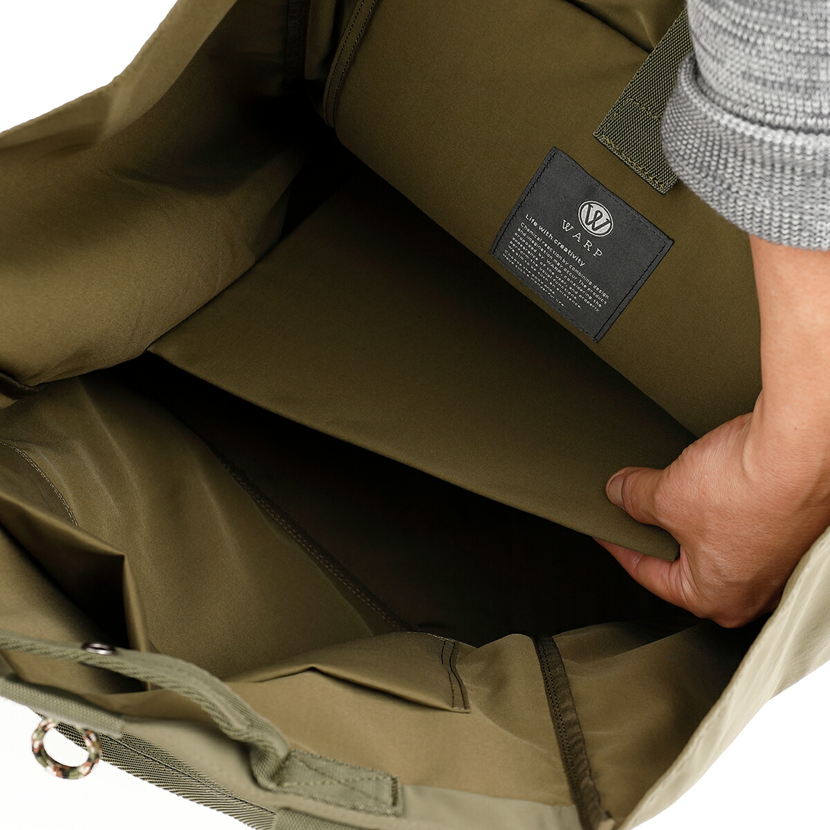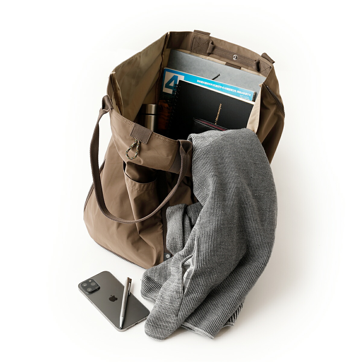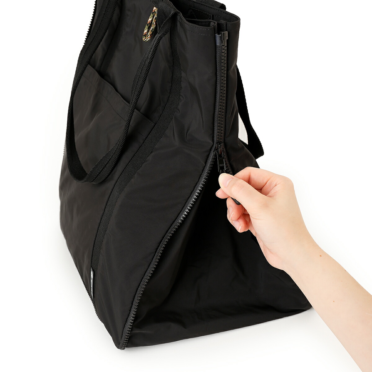 | 荷物の量や大きさ合わせて、 バッグのサイズが変わったら、 便利だと思いませんか? そんな願いを叶えてくれるのが、 「WARP」のトランスフォーム トートバッグ。 サイドのジッパーを開けて、マチを広げると、大容量バッグにトランスフォーム! 荷物がたっぷり収納でき、日常使いから、お買い物、トラベル、アウトドアまで、幅広い用途に対応します。 |