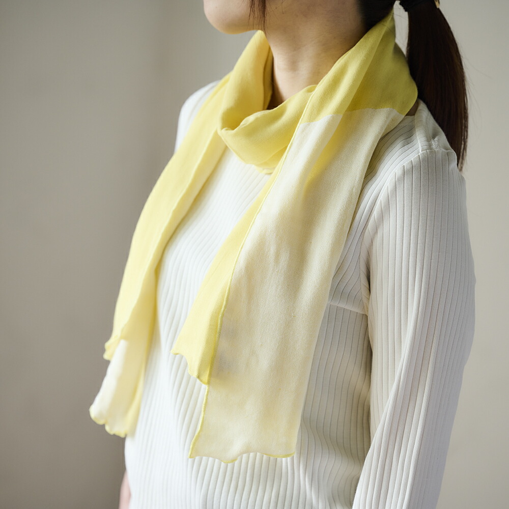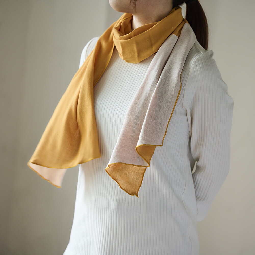 | 他の人と差をつけたいときに、おすすめなのは断然2枚巻き! 超軽量なガーゼ素材のWARP ガーゼスカーフタオルだからできるアレンジです。 ぜひ、お好みのカラーを選んで、2枚巻きにトライしてみてください。 |