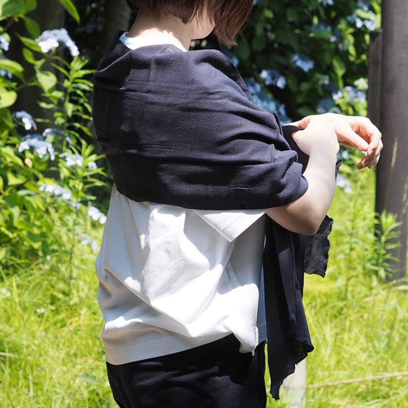 | 吸・放湿性が高く、ふんわりやさしいガーゼの肌触りも快適。日差しや冷房対策にも役立ちます。 |