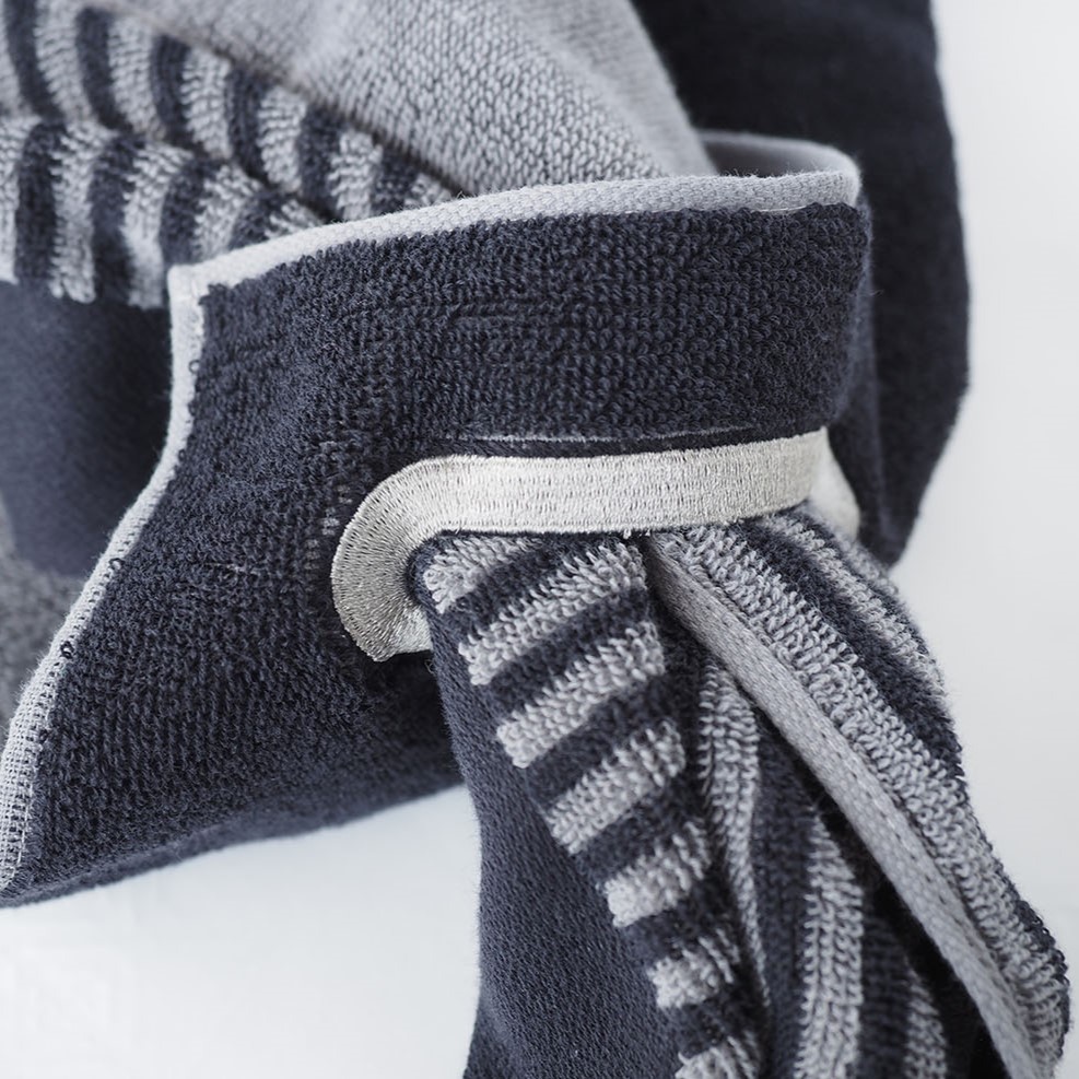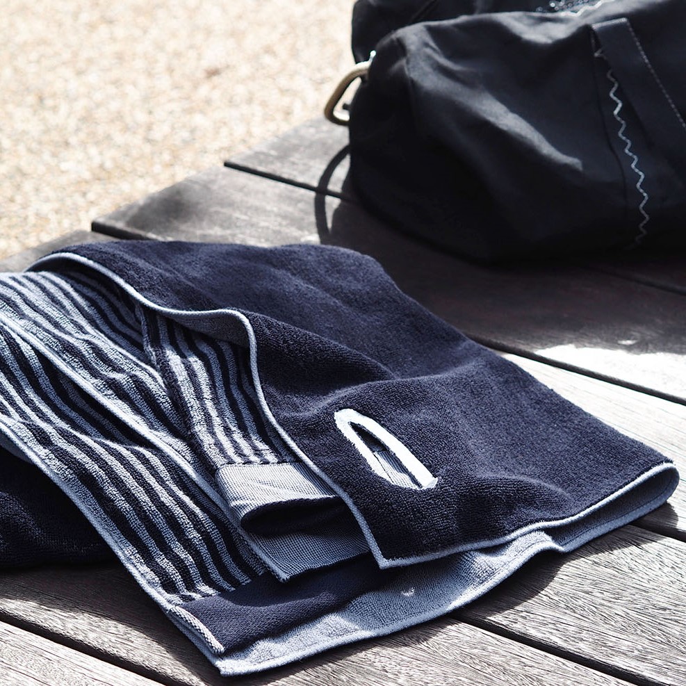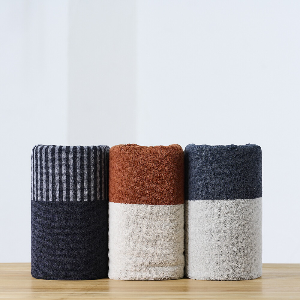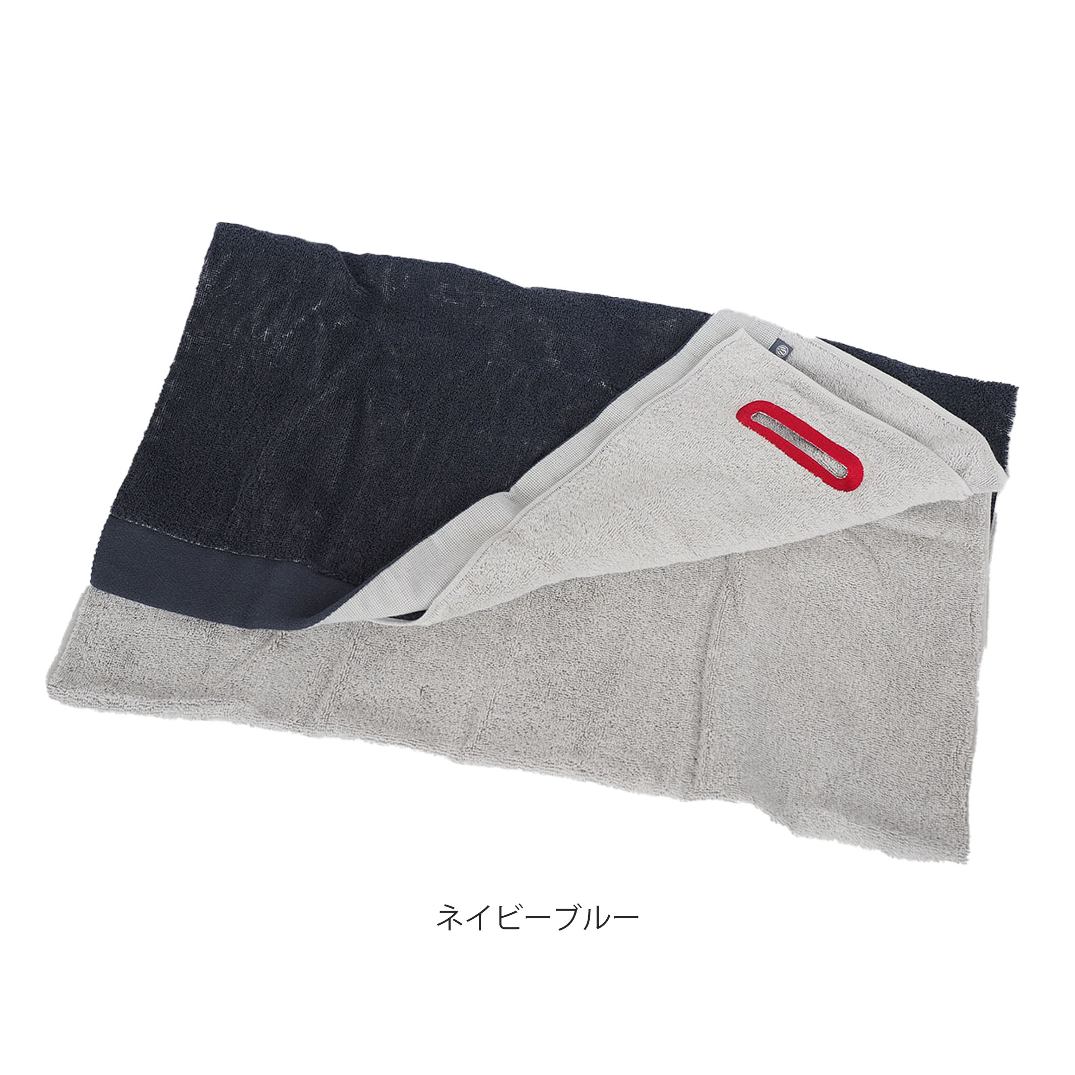 | ネイビーブルー:やわらかパイル ソフトな風合いのフルフィーコットンは吸水性が高いだけでなく毛羽の発生も防ぎます。 |