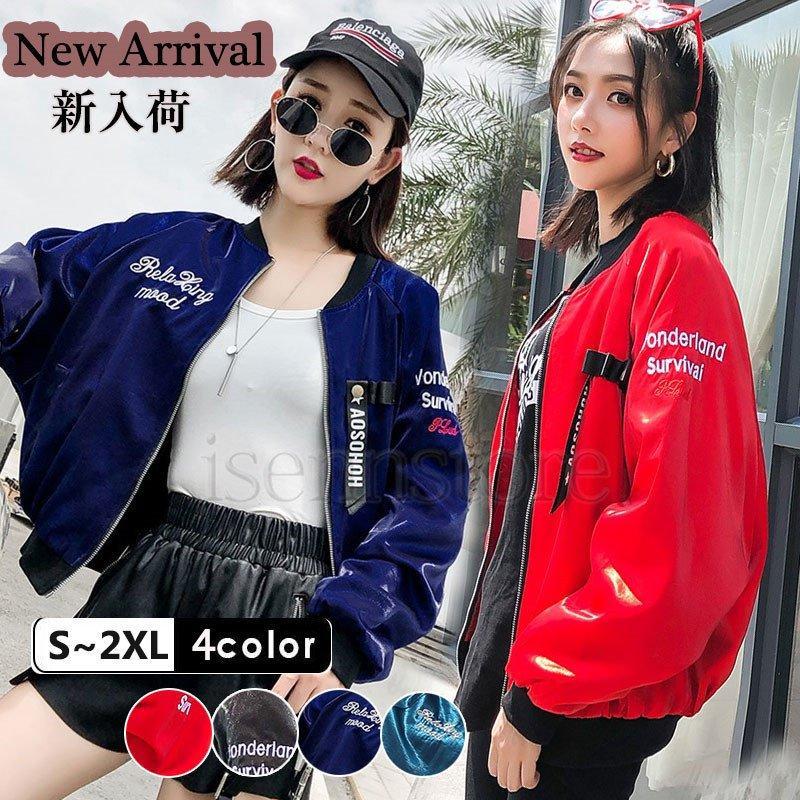 スタジャン レディース 刺繍 ジャケット ジャンパー サテン 光沢 スカジャン ブルゾン アウター 春物 長袖 ジップアップ 原宿 ゆったり