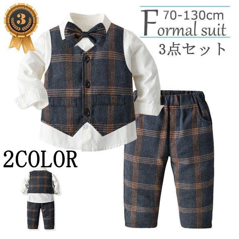 男の子ベビーフォーマル おしゃれな タキシード風 上下3点セット 70-130 1歳 2歳 3歳 ベビー服 スーツ 男の子 結婚式 お祝い お誕生日