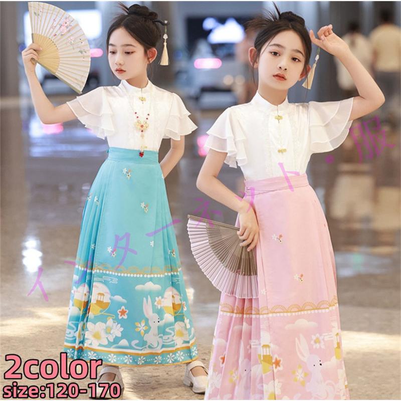 子供服 セットアップ キッズ 女の子 春夏 2点セット 上下セット Tシャツ 半袖 スカート ロング丈 薄手 おしゃれ カジュアル ジュニア おしゃれ