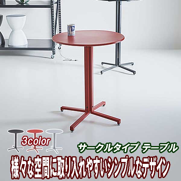 カフェテーブル 丸 直径60cm 高さ73cm サークルタイプ アジャスター付 3カラーは、様々な空間に取り入れやすいシンプルなデザインのカフェテーブル、直径60cm、高さ73cmのサイズで使いやすく、スチール製でお手入れしやすい、アジャスター付で固定できるカフェテーブル丸タイプです。おしゃれなサークルタイプは、お部屋をおしゃれに変身してくれます。また、オフィスやカフェなど様々な空間に取り入れやすいシンプルなスリムデザインも魅力的。仕上がり抜群の粉体塗装を施した丸形カフェテーブルのカラーは、インテリアに合わせやすいブラック(黒)、グレー(灰)、レッド(赤)の3カラーよりお選びいただけます。