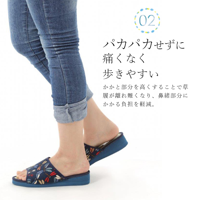 また見た目だけでなく、かかと部分を高くすることで足裏がサンダルから離れにくくなっています。