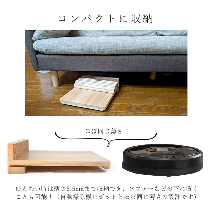 ●使わない時は8.5cmまで収納でき、ソファーなどの下に置くことも可能!(自動掃除機ロボットよりも薄い設計です)