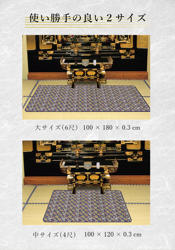・畳の焦げを防ぎ、仏前を荘厳にして、火災から守る、仏前敷き
