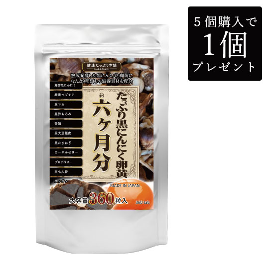5個で1個プレゼント たっぷり黒にんにく卵黄 6か月分 90g 360粒 黒マカ ニンニク プロポリス 健康食品 サプリメント 大容量 6か月分 大容量サプリメント