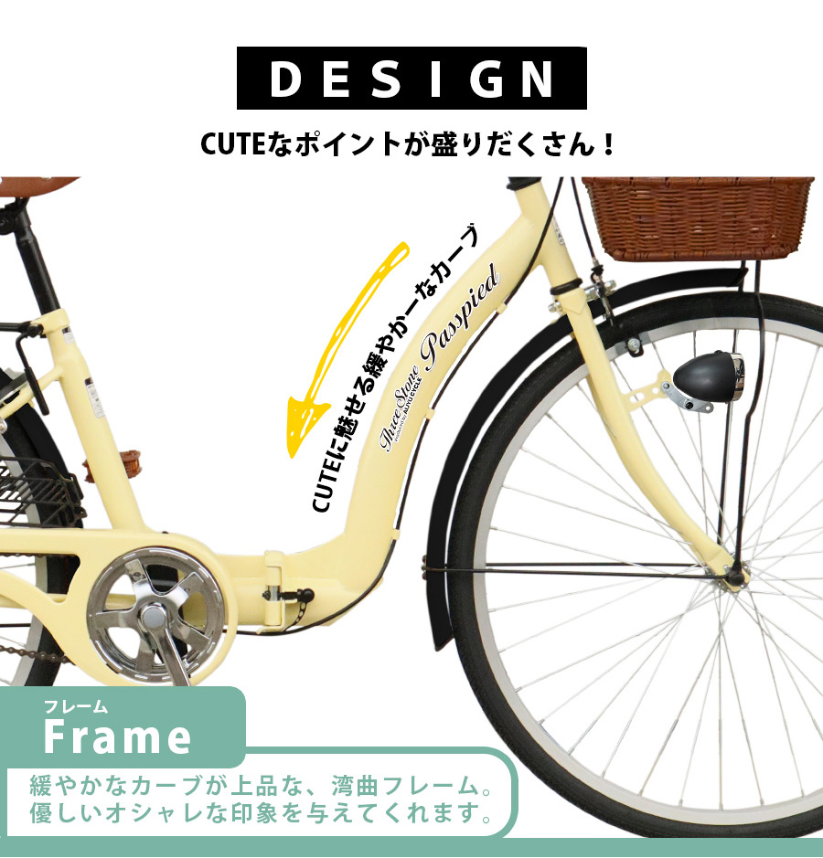 ・電池式LEDライト、サークル錠、荷台、チェーンカバー、前後フェンダー、両立スタンド装備済み