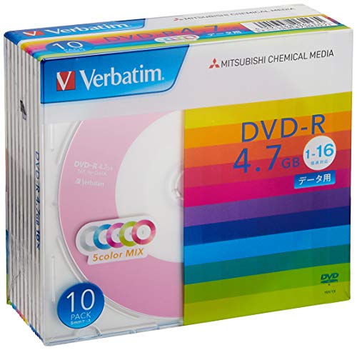 バーベイタムジャパンVerbatim Japan 1回記録用 DVD-R 4.7GB 10枚 5色カラーディスク 片面1層 1-16倍速 DHR47JM10V1