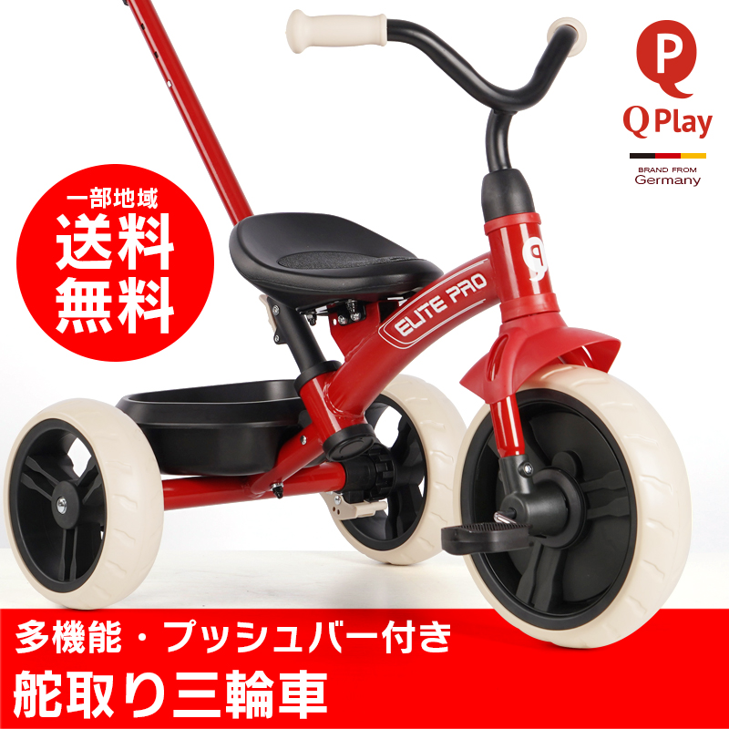 三輪車 舵取り プッシュバー ペダルフリー 手押し車 手押し棒 ブレーキ リアバスケット ドリンクホルダー 軽量 コンパクト[Q Play ELITE PRO]