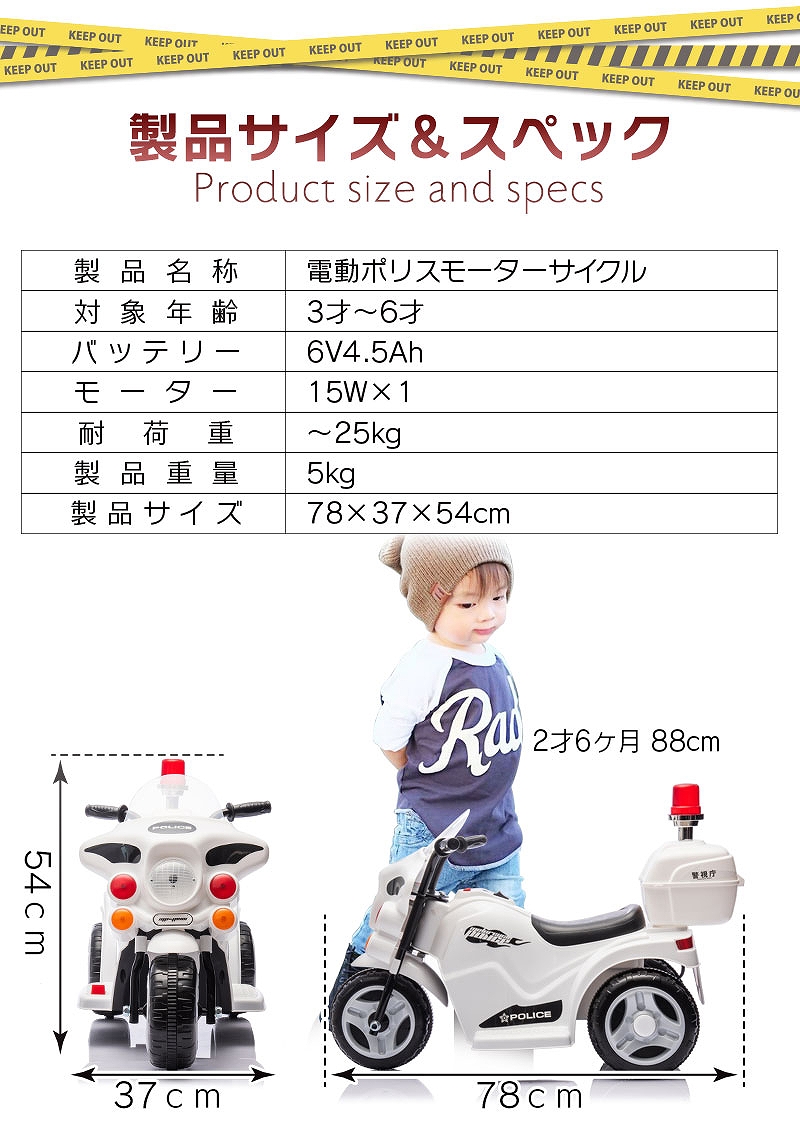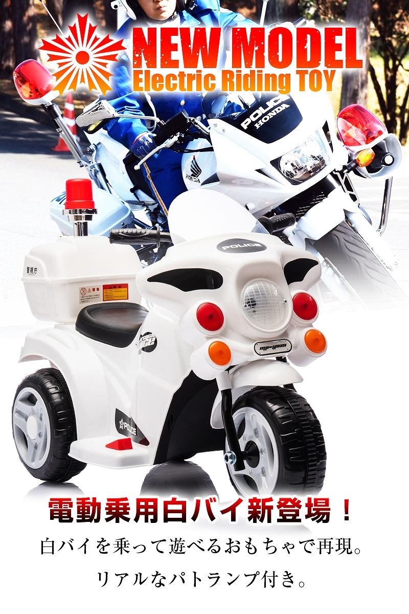 乗用玩具 電動乗用玩具 白バイ POLICE MOTORCYCLE ポリスモーターサイクル 警察 パトロール 簡単操作可能な電動カー 電動乗用玩具 子供が乗れる