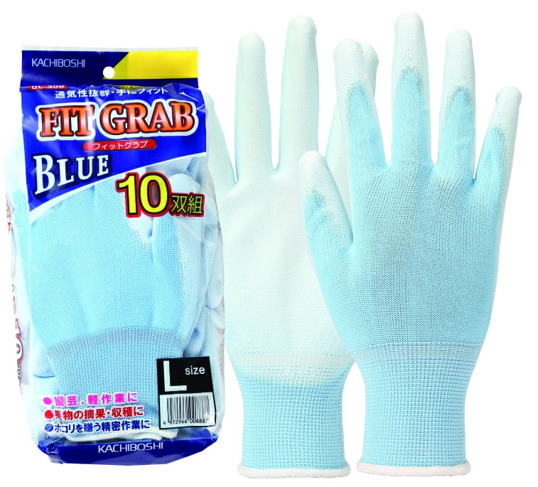 BL-300 フィットグラブ ブルー 10双組 滑り止め付 ウレタン手袋 背抜き手袋 園芸用 勝星産業