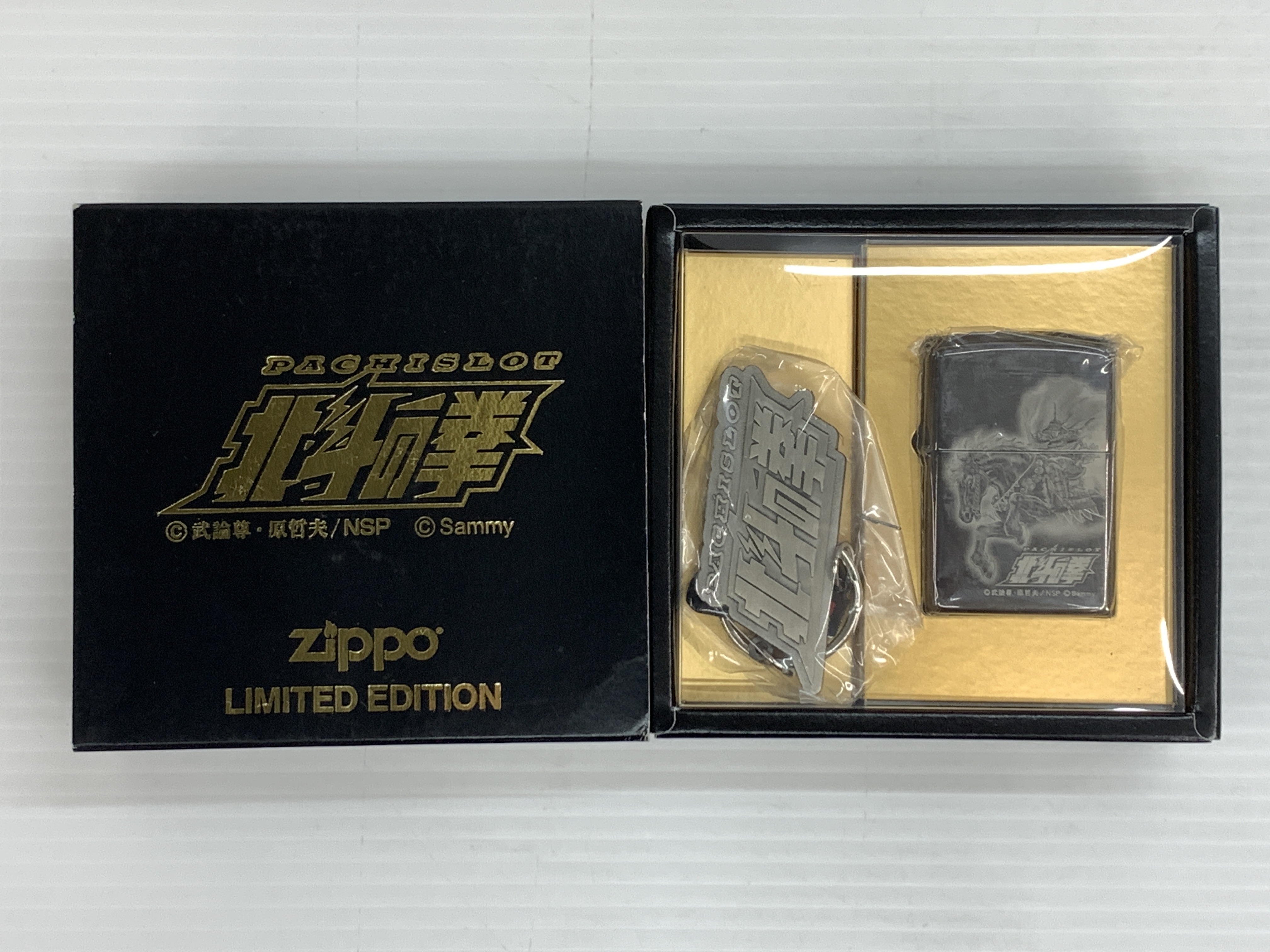 ZIPPO パチンコスロット 北斗の拳 ラオウ & 黒王号 キーホルダー付 LIMITED EDITION 2004年11月製 箱あり 未使用品 ▽130175