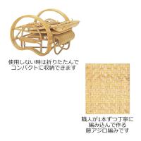 | サイズ: 約79×奥行140〜174×高さ68〜98cm 座面高さ: 約35cm 座面部内寸: 幅48×奥行50cm 背もたれ部内寸: 約幅45×高さ73cm サイドテーブル: 約幅15×奥行38cm オットマン: 約幅42×奥行55cm 収納時サイズ: 約幅79×奥行100×高さ53cm 耐荷重: 約80kg 重量: 約11.0kg 完成品 おもな材質: ラタン(籐) | |