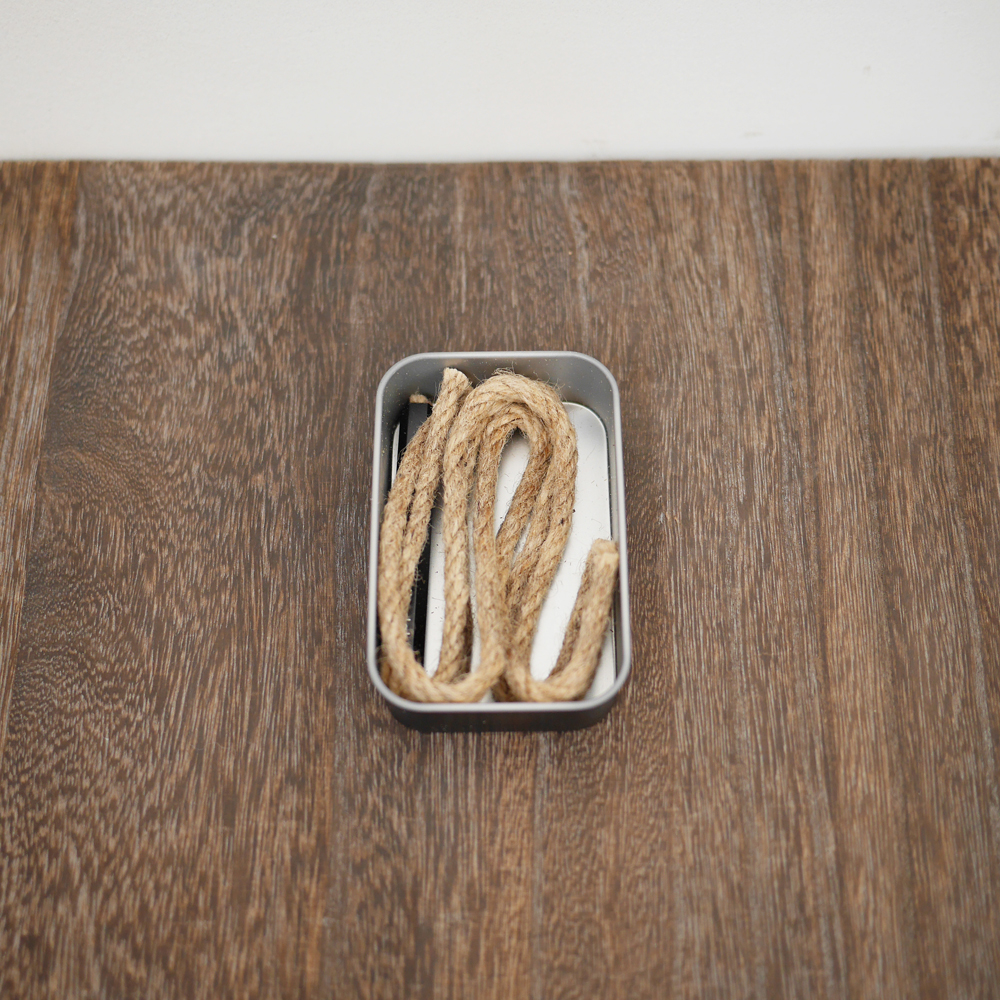 オリジナルのKero Dry(ケロドライ)というパラフィンワックスを染み込ませた麻紐に火をつけて着火させる着火剤。