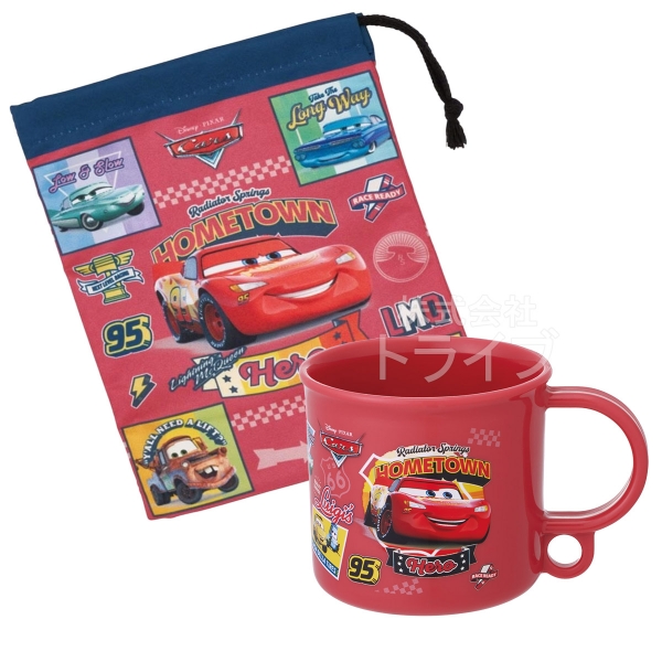 カーズのコップとコップ袋のセットです。保育園や幼稚園の給食やお弁当に必需品!単品で揃えるよりお買得です♪