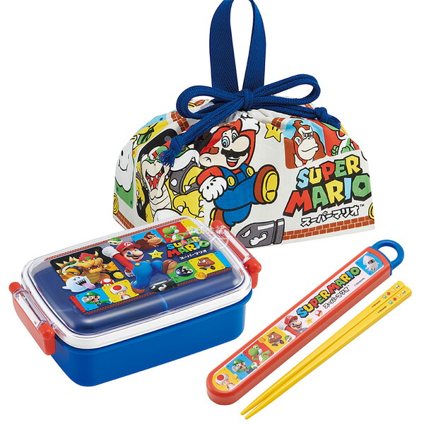 スーパーマリオ 抗菌 角型お弁当箱 450ml 箸&箸箱 巾着セット
