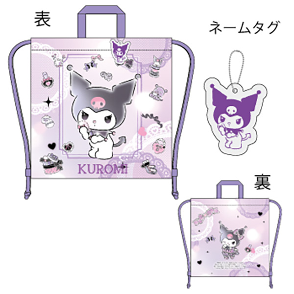 クロミのナップサックです。雨や汚れに強い撥水加工。キャラクターの形をした反射材のネームタグ付きです。