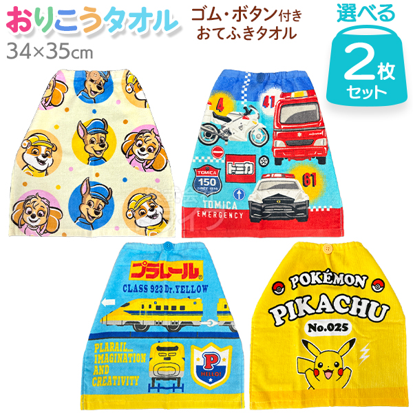キャラクターのゴムひも付きでお食事エプロンとして使える「おりこうタオル」お得な2枚セットです。お好きなキャラクターを2種お選びください。保育園や幼稚園、お出かけに大活躍!コップやスプーンなどを包んでボタンで留めれば持ち運びにも便利♪ 肌にやさしい綿100%素材です。