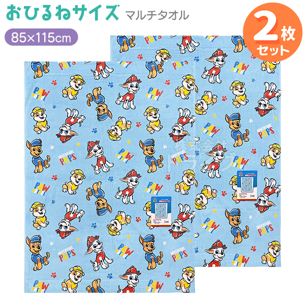 パウパトロールのマルチケットです。お昼寝用のタオルケットとして、保育園や幼稚園におすすめです。吸水性に優れ、肌にやさしい綿100%素材。大好きなキャラクターと一緒にお昼寝しよう♪