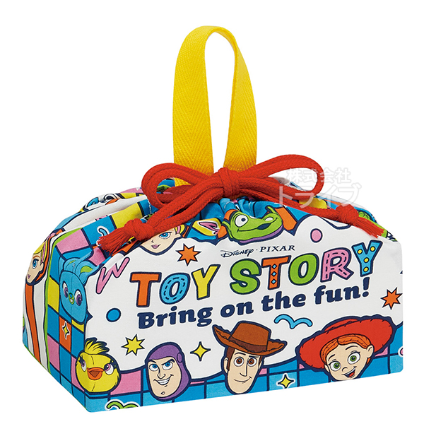 トイストーリーのランチ巾着です。当店で取扱いのお弁当箱や、トリオセットが入る大きさ。お弁当箱とセットで揃えても、違う絵柄のお弁当箱を合わせても楽しめます♪