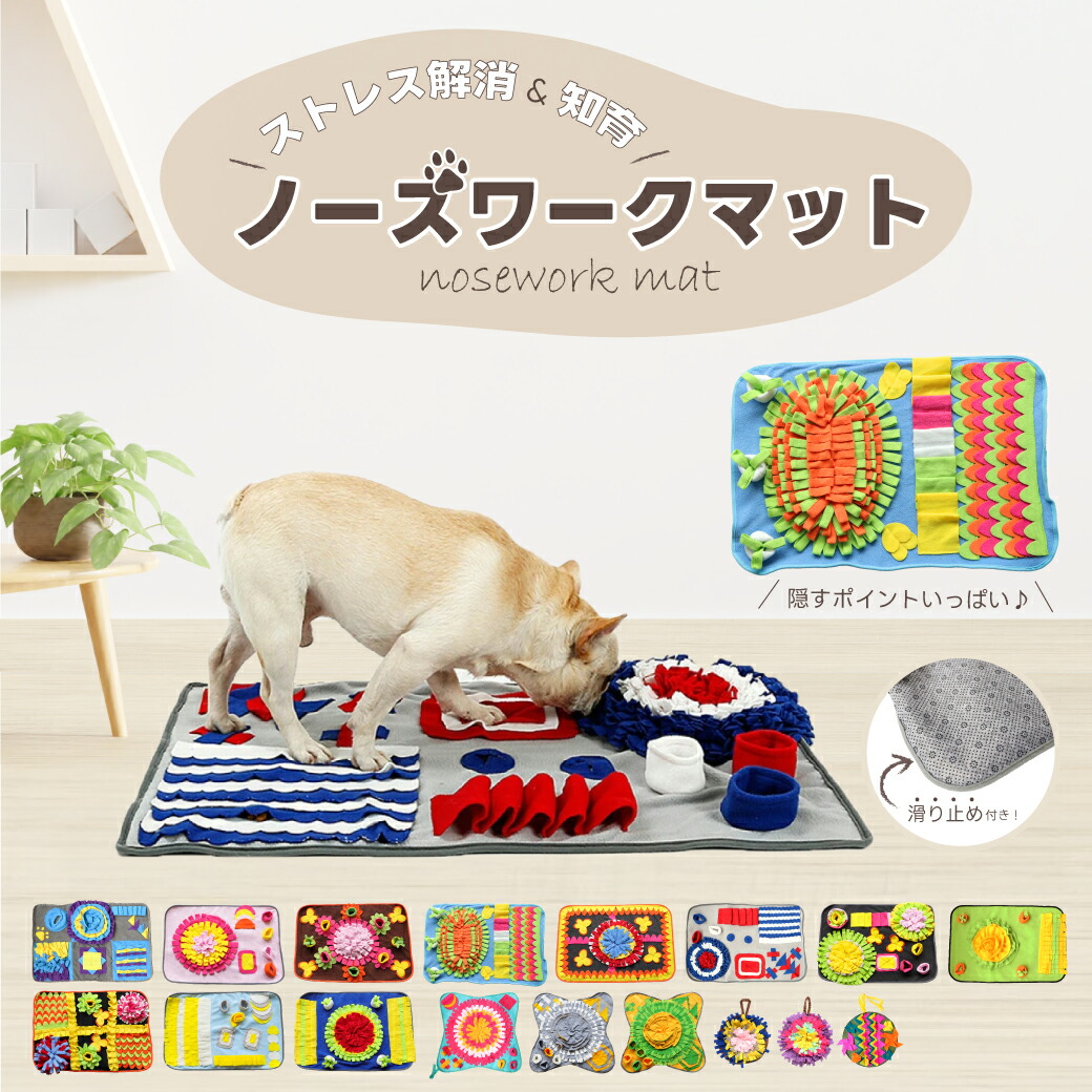 | 商品 説明 | 知育おもちゃとして人気なノーズワークマットです。 ノーズワークとは持ち前の嗅覚を活かしておやつを探す遊びです。 いたずら防止・運動不足解消・集中力向上に! また嗅覚能力を使って本来の本能を刺激することができ、ストレス解消にも役立ちます。 おやつの隠し場所豊富で飽きずに長い時間楽しむことができます。 裏地が滑り止め付きなので安心・安全にご使用いただけます。 |