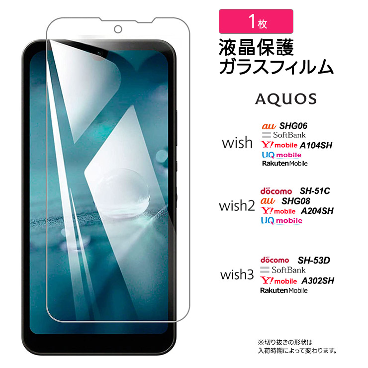 AQUOS wish wish2 wish3 ガラスフィルム フィルム 強化ガラス 液晶保護 飛散防止 アクオス ウィッシュ スマホ 画面保護 保護フィルム au SoftBank ソフトバンク