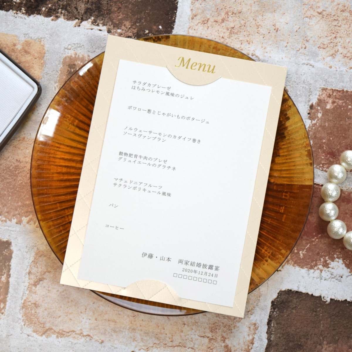 メニュー コンプリート ベージュ 結婚式 メニュー表 印刷込み ペーパーアイテム 挙式 披露宴 食事会 当日ペーパー パーティ 一般宴会 祝賀会 謝恩会