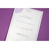 メニュー ダリア むらさき 結婚式 メニュー表 印刷込み ペーパーアイテム 挙式 披露宴 食事会 当日ペーパー パーティ 一般宴会 祝賀会 謝恩会