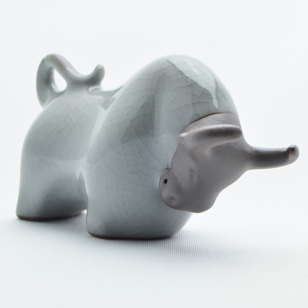 ●汝窯風、勢いある曲線が美しい金牛