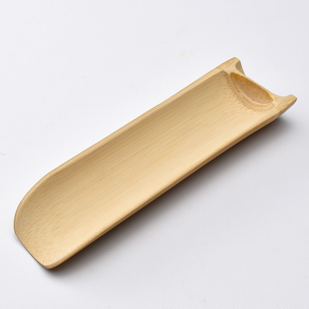 竹の節を使った茶道具。茶葉をのせておく小皿、とお考えください。茶葉を鑑賞した後、茶匙を使って茶壺に茶葉を入れていきます。