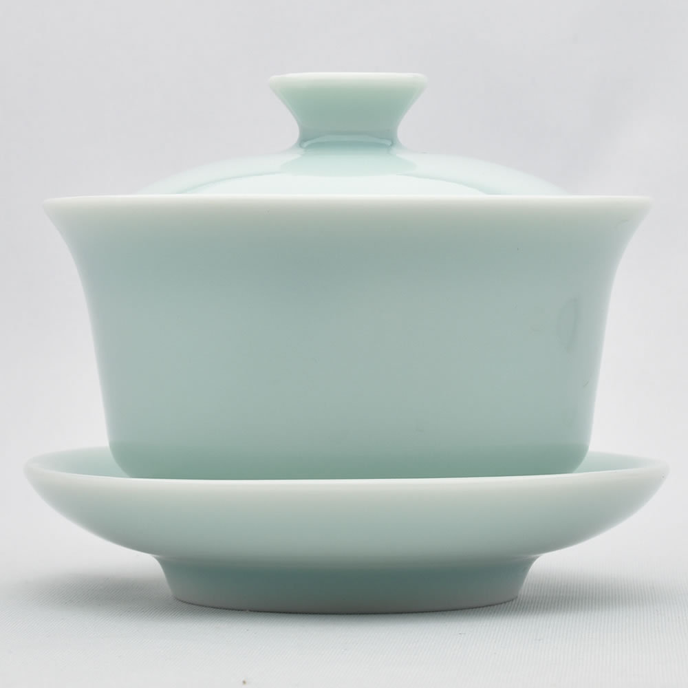 こちらは、底面が平たく背が低め、どっしり安定した感のある蓋碗です。容量は120mlほどですが、龍泉青磁は他の素材の蓋碗に比べると厚手のため、一層、ずっしりとした感じがあります。