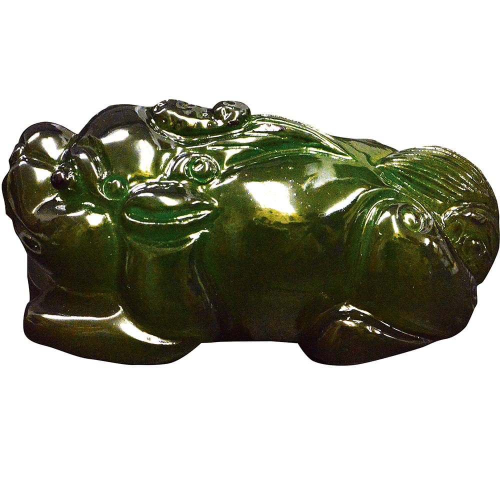 茶寵とは、茶人のペットなり。中国のサイト「百度百科」の直訳ですが、一般には茶盤の上に置いてお湯やお茶をかけて楽しむ置物のことを茶寵(チャアチョン、ちゃちょう)といいます。紫砂でできているものなどは茶壺と同様、茶渋を吸収して年を経るにつれ変化し価値を高めていく精巧な工芸品という面もあり、いわゆる作家物などもありますが、多くはもう少し気軽に楽しむもので、陶器・磁器・樹脂など様々な材質のものがあります。こちらは樹脂製でお湯をかけて温度が上がると色がより明るくなります。