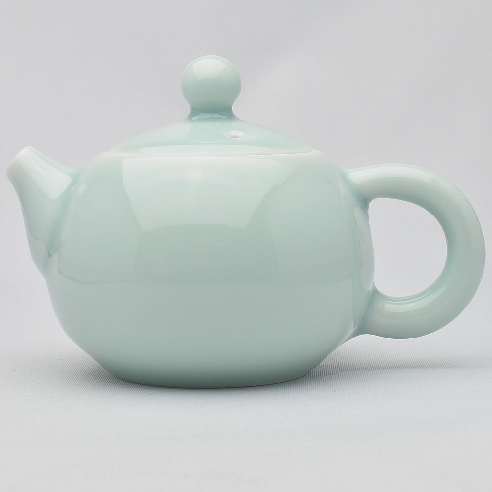 龍泉の青磁には様々な色がありますが、こちらは代表的な粉青という薄いブルーが美しい弟窯にならったものです。もともとの胎は白色で釉薬の薄いところは白に濃いところは水色になり微妙なグラデーションが生み出されています。薄さを良しとする磁器とは違い、厚くしっかりした重みがあります。