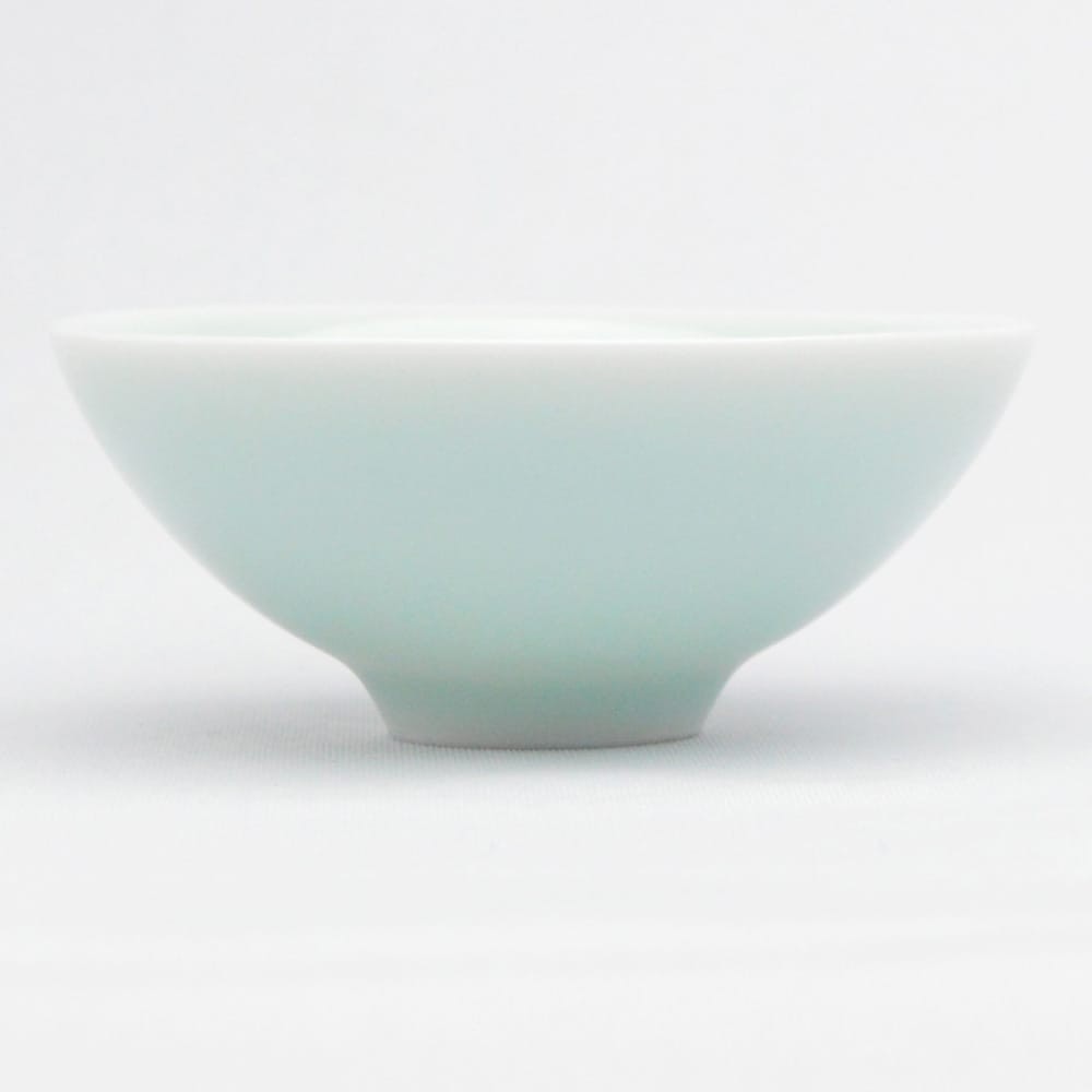 笠を逆さにしたような斗笠杯。古くからある一般的な杯ですが、上から見た時に磁器の表面が広く見えるので青磁の味を楽しむのに適し、また、サイズが頃合いで持つとつい口に運びたくなる、そんな杯です。店長イチオシ、日本酒にもぴったりです。