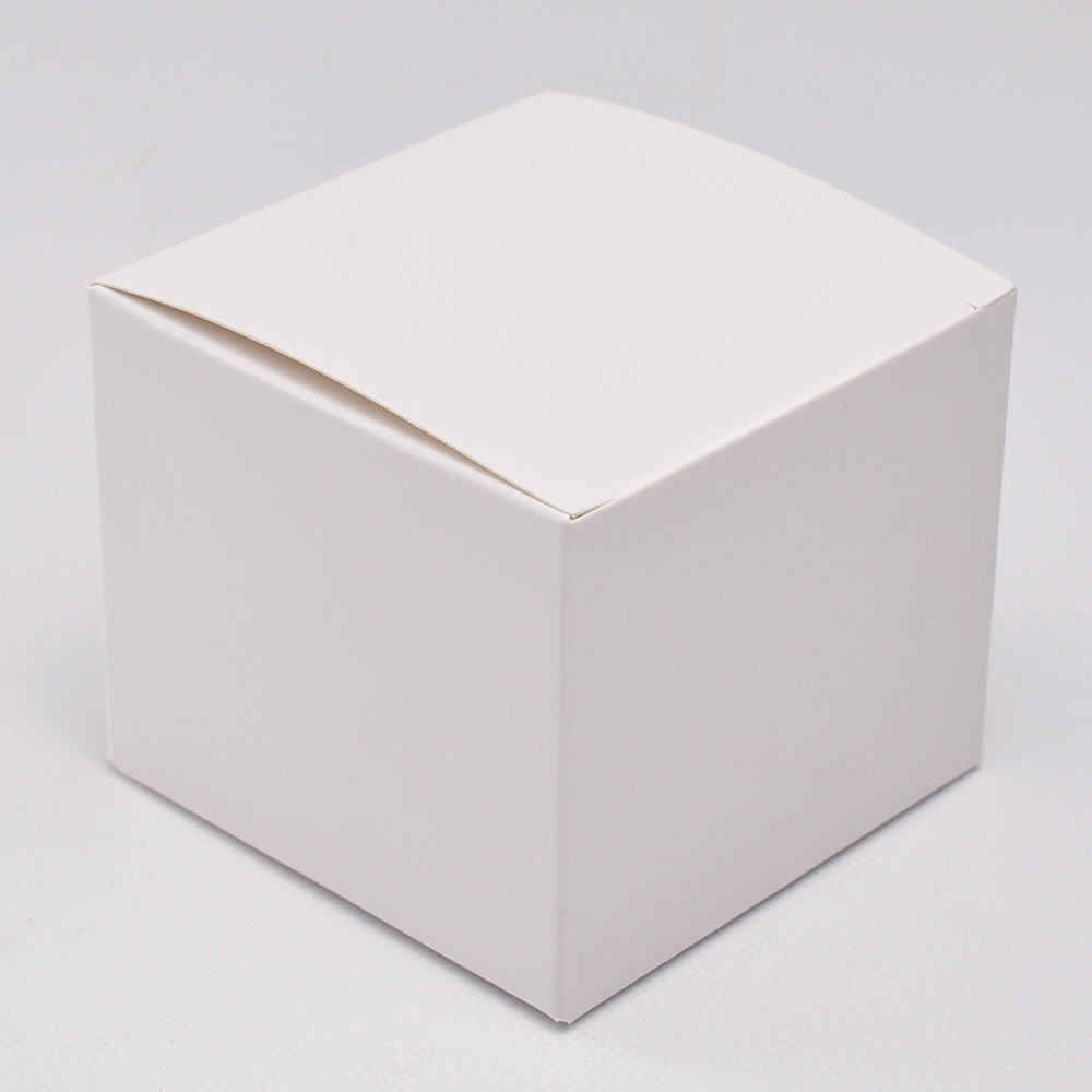 厚手のマットコート紙、何も印刷されていない白い箱です。内容に応じ緩衝材など適宜補って梱包いたします。プレゼント用のラッピングが必要な場合などにご利用ください。