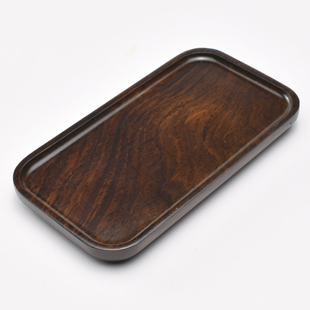 黒檀の茶托、木目や色の濃淡に個体差がありますので予めお知り置きください。長方形なので、品茗杯と聞香杯の2つを並べて置くのにもちょうど良い作りです。