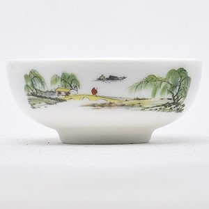 杯は背が低く幅広、薄手の磁器の品茗杯です。