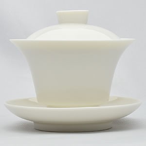 細身でラッパ状に反った形が特徴的な蓋碗です。 底部は平らです。