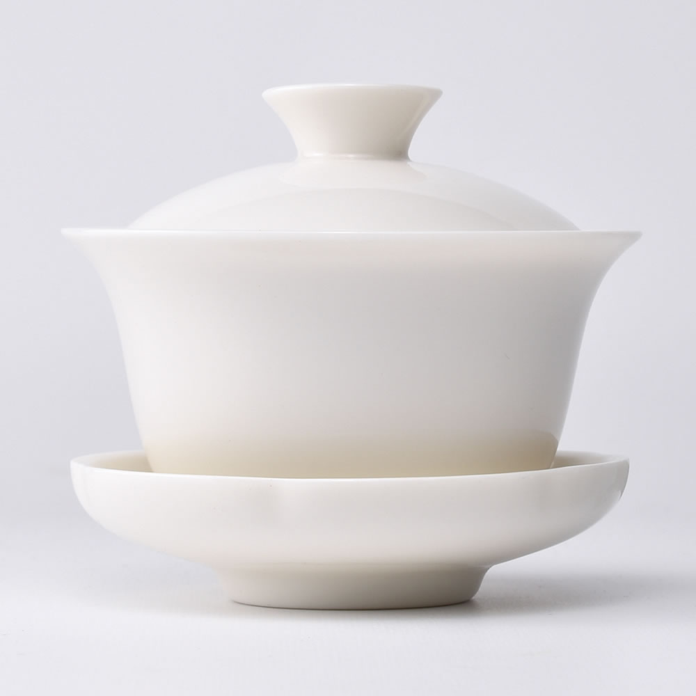 ※蓋碗のフタは、茶を撹拌したり、ずらして置いて隙間から茶を出すためのものです。そのため斜めの状態で安定する作りになっており、まっすぐに置いた状態では安定しなかったり隙間ができるのが一般的です。予めお知りおきください。