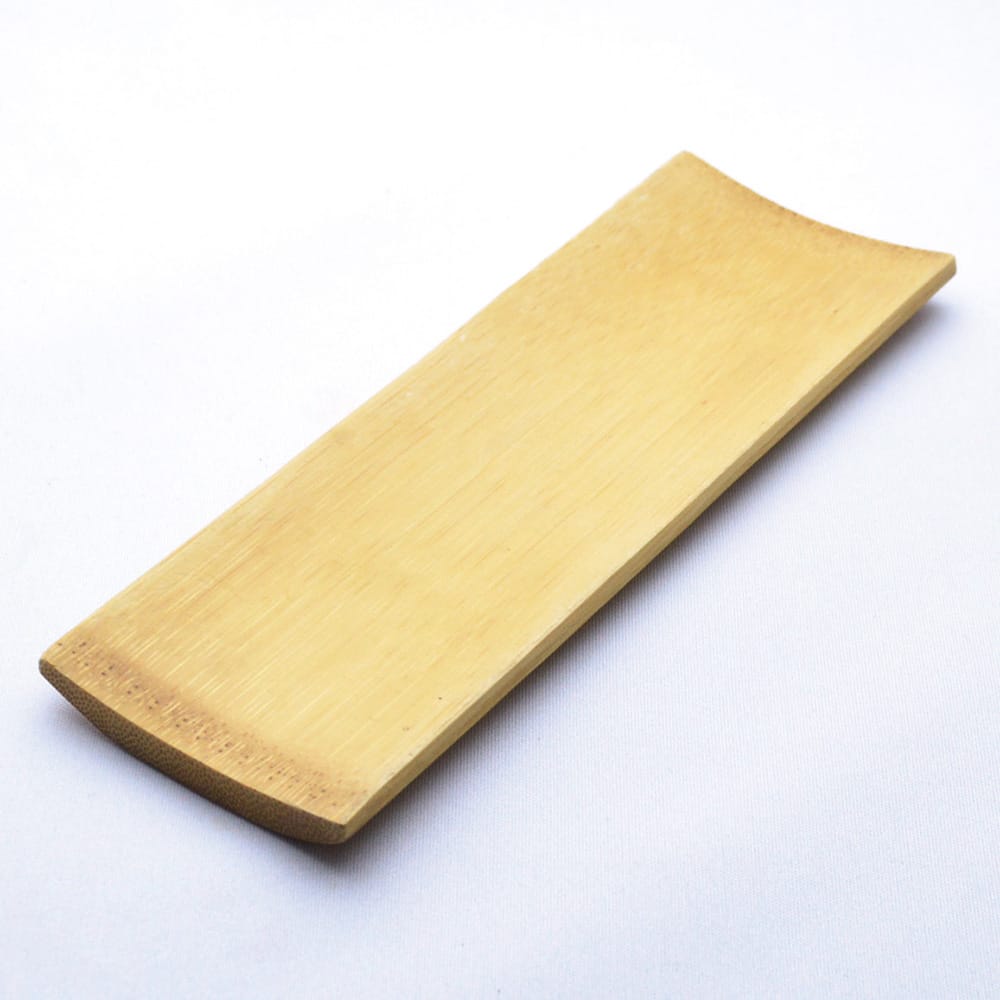 茶巾を受ける竹製の托です。小さめサイズで茶巾と合わせると写真のようになります。