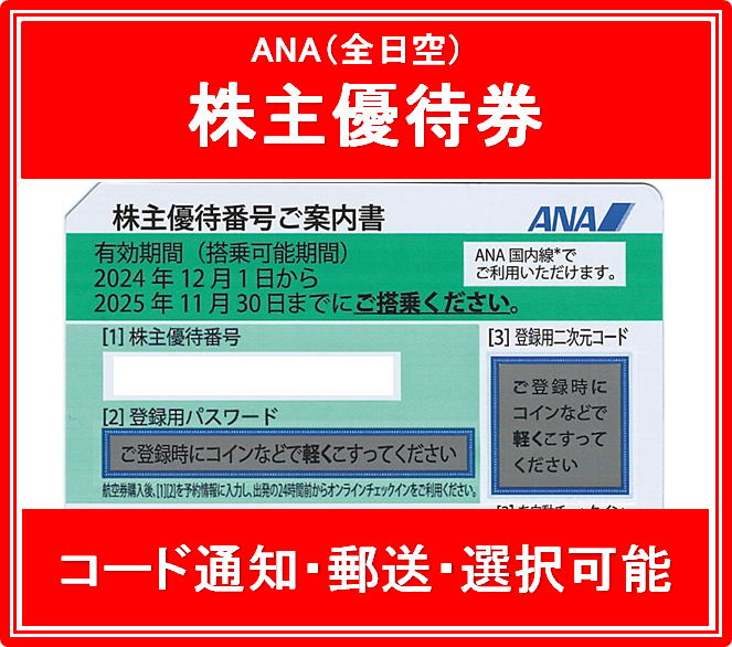 【コード通知 又は 郵送 選択可能】ANA(全日空)緑色 株主優待券 有効期限2024年12月1日から2025年11月30日まで
