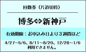 博多⇔新神戸 新幹線 6枚綴り回数券切売り JR切符 1枚/片道(ギフト券・優待券・回数券)