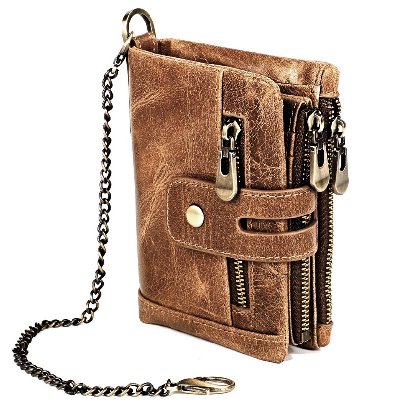 二つ折り 三つ折り 財布 メンズ 本革 高級牛革 バイカーズ ウォレット おしゃれなヴィンテージ加工 チェーン付き 送料無料 多機能 大容量 38