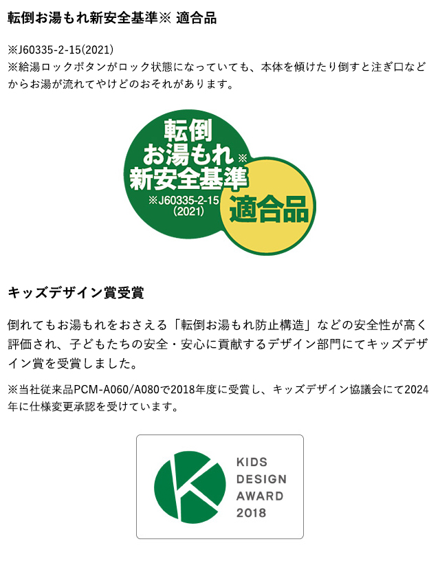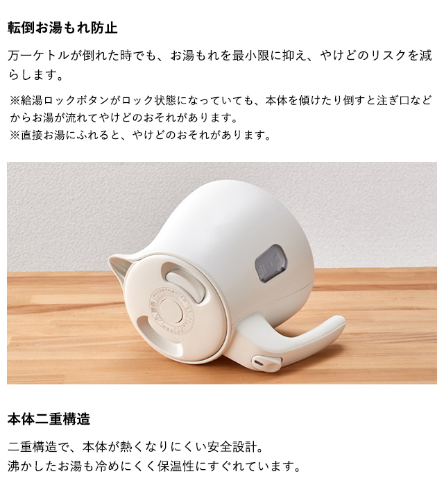 (※)転倒時のお湯漏れを完全に防ぐものではございません。