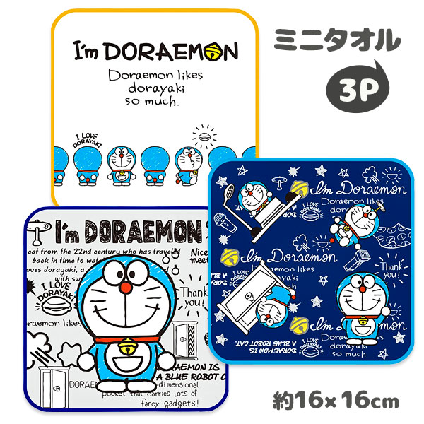 【商品詳細】ドラえもんのミニタオル3枚セットです!小さなポケットにもスッキリ入る!