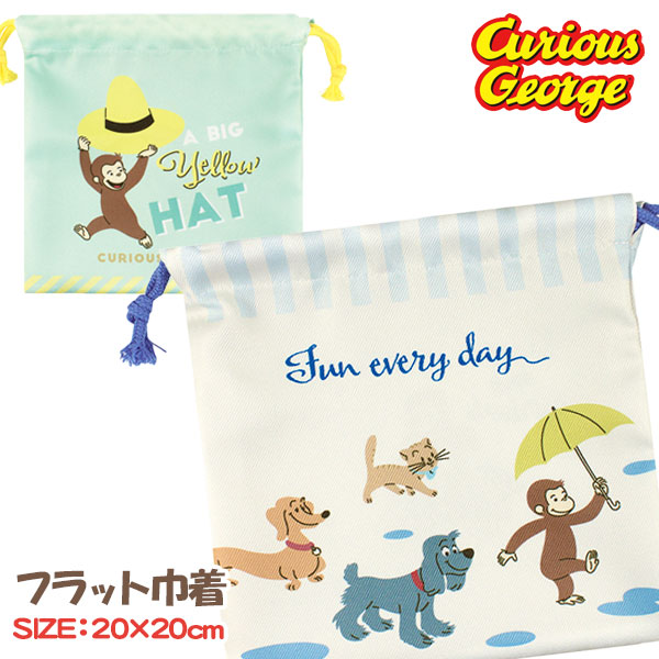 【商品詳細】おさるのジョージの落ち着いたデザインのフラット巾着です♪